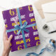Este diseño de papel envolvente incluye un mensaje como "¡EL CUMPLEAÑOS 61 DE REGINALD!", con el "61" con un aspecto de color falso/imitación de color dorado, y con el nombre y "CUMPLEAÑOS" en un tipo de letra divertido y audaz. El nombre es personalizable y el fondo es morado. El papel envuelto como este podría ser usado cuando se le dan regalos de cumpleaños a alguien en celebración de su sesenta primer cumpleaños. [~Z0000206]