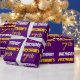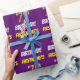 Este diseño de papel envolvente incluye un mensaje como "¡Séptimo cumpleaños de FIRSTNAME!", en el que el "séptimo" tiene un aspecto de color falso/imitación de oro, y con el nombre y el "CUMPLEAÑOS" en un tipo de letra divertido y audaz. El nombre es personalizable y el fondo es morado. El papel envuelto como este podría ser usado cuando se le dan regalos de cumpleaños a alguien en celebración de su séptimo cumpleaños. [~Z0000206]