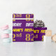 Este diseño de papel envolvente incluye un mensaje como "¡CUMPLEAÑOS 82 DE PRIMER NOMBRE!", en el que el "82" tiene un aspecto de color falso/imitación de oro, y con el nombre y el "CUMPLEAÑOS" en un tipo de letra divertido y audaz. El nombre se puede personalizar y el fondo es morado. El envolvimiento de papel como este podría ser usado cuando se le dan regalos de cumpleaños a alguien en celebración de su 82° cumpleaños. [~Z0000206]