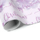Navidades de papel de envolver regalo personalizado tu propio guión moderno de color púrpura verde "Feliz Navidad" sobre fondo floral color morado claro.