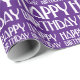 Envuelve tus regalos en este Papel de envolvimiento de cumpleaños feliz de Art Deco. Presenta un elegante y blanco tipo deco con un fondo morado oscuro. Este clásico papel de envoltura es un divertido regalo para cualquiera.