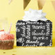 Nube de palabras blancas THANKS sobre un fondo negro.