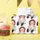 Vieja muñeca de trapo con margaritas blancas y anteojos con fondo blanco.