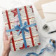 Envíe un saludo personal este papel de embalaje rústico festivo del país, ofreciendo un fondo de la partitura del vintage (escuche, los ángeles de Herald cantan) con la franja roja.