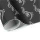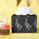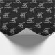 Un simple y elegante pedazo de papel envolvente con temas de música en blanco y negro - arcos blancos de trébol y bajo contra un fondo negro texturado. Amor musical.