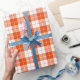 Papel de envoltura diseñado con un diseño de naranja brillante y de manta blanca. Personalizar el fondo blanco entre otras opciones.