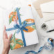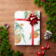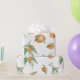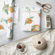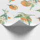"Naranja de Citrus Moderno en Papel de envolvimiento Floral de acuarela blanca". La acuarela pintada a mano Citrus Cutie diseño naranja con frutas, flores y vegetación vegetal por parte de la artista y diseñadora con licencia internacional Audrey Jeanne Roberts, copyright.