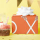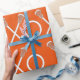 Embalaje de regalo de lacrosse creativo o decoración de eventos deportivos con palos lax y patrón xo en el fondo de naranja de equipo.