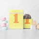 Este número uno hará que tu hijo sepa que es una celebración divertida. El número está pintado en naranja sobre un fondo amarillo, con líneas naranjas que salen del número uno.