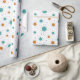 Este fabuloso papel de envolvimiento moderno de mediados de siglo presenta estallidos franciscanos en azul turquesa y naranja. ¡Haz una declaración divertida sobre tus regalos!
