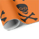 Papel de envolver negro y Naranja con capacidad de Skulls. Imagen del cráneo negro y de los huesos cruzados repetida en un fondo naranja de Halloween. ¡Una elección perfecta para un regalo de Halloween!