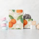 Papel De Regalo Naranjas, hojas verdes y patrón de flores blancas