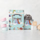 Papel de natividad con fondo azul claro, presentando, María, Jesús, José, Pastor, Estrella, Ángel, Burro, Oveja