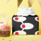 Este papel de envoltura tiene un diseño moderno de ovalos blancos con círculos rojos conectados por líneas blancas en un campo de negro. ¿Quieres colores diferentes? Mándame un mensaje.