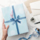 Un hermoso papel de regalo azul pálido con una ligera imagen de rayos de sol