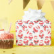 Un lindo rollo de papel de envoltura rojo y blanco que presenta muchas versiones de santa claus y navidades paternas. Este diseño contiene A.I.