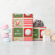 Papel de regalo de vacaciones creativo con jugadora de voleibol divertida Sra. Claus. Para personalizar, edite el texto para agregar el nombre.