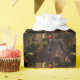 El perro negro del perro chino es feliz que él piensa que él encontró su regalo de Navidad, un ornamento que él piensa es un papel de embalaje lindo del día de fiesta del navidad de los amantes del perro de la bola