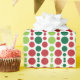 El diseño en este papel de embalaje del navidad ofrece un modelo de la raya vertical de diverso - los puntos clasificados. El modelo de moda de los puntos rojos, verde oscuro y de la verde lima es perfecto para cualquier regalo del navidad.