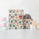 Navidades envolviendo papel con latas de dulces y árboles de Navidad en él