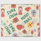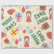 Navidades 2022 moderno lindo color rosa verde rojo elegante papel de envoltura para niños. Pastel rosa adorable con el texto Feliz Navidad. Este lindo patrón rosa es una combinación de pequeños chicas, ornamentos, regalos, tazas rojas y copos de nieve grises.