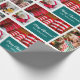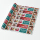 Celebra la temporada de fiestas con este moderno y personalizado papel de envoltura. El envoltorio de regalo ofrece espacio para cinco de tus fotos familiares favoritas. También hay un área con un fondo azul verde azulado y el saludo Feliz Navidad (que puede ser editado) y tu apellido. Fotos, saludos y nombres repetidos en un lindo patrón para una hermosa apariencia festiva.