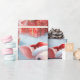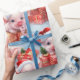 Dulces y adorables lechones rosados en la nieve con regalos envueltos y sombreros de santa para Navidades, perfecto para Navidades agrícolas envueltos de regalo