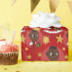 Navidades envolviendo papel con el ilustracion de un lindo sonriente bebé afroamericano sosteniendo un regalo de Navidad; en un círculo rojo sobre un fondo rojo con estrellas, un diseño de vacaciones Navidades con una plantilla de texto editable para tu nombre o mensaje