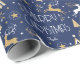 Papel De Regalo Navidades Art Deco Nombre personalizado reno Azul