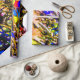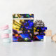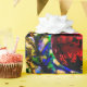 Árbol de Navidad y bola de ornamento rojo cubierta de nieve fresca. Luz colorida alrededor. Humor alegre y alegre. Feliz Navidad Y Feliz Año Nuevo. Saludos de temporada. Impresiones y regalos para cualquiera por diversión y buen humor. Productos y souvenirs horizontales o orientados al paisaje.