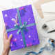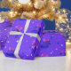 Envuelve todos tus regalos de vacaciones en este elegante diseño retro. Este diseño tiene un patrón impecable con un fondo azul violeta e incluye campanas de Navidades morados y azules con cintas moradas, estrellas blancas y copos de nieve que caen de blanco.