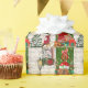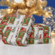 Chow Chow Dog sentado afuera de la casa decorada con corona de Navidades, el árbol de Navidad es un perfecto regalo de Navidades para los amantes del perro.
