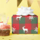 Buffalo rojo y verde relleno con reno blanco y siluetas de cristal de nieve.