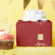 Un fondo rojo, texto blanco. Feliz Navidad está escrito con un tipo de letra con letras a mano. Personalice y agregue su logotipo de negocio.