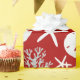Hermosos Navidades costeros envueltos en papel presentan un patrón de pez estrella, dólares de arena y coral purpurina en un esquema de color rojo y blanco. *Si quieres este diseño en más productos o necesitas ayuda de diseño, por favor contacta conmigo a través de Zazzle Chat.
