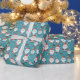 Papel de envoltura de regalo de Santa Navidades. Pequeños amigos íntimos con un fondo azul claro.