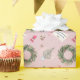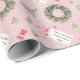 Los Navidades festivos de los partidos temáticos envuelven el diseño de papel con un marco de flores de vacaciones acuarela para tu foto favorita y acentos que coinciden, incluyendo acuarela árbol de Navidad, corazón, arco, etiqueta de regalo con un mensaje corto, vegetación de vacaciones, estrellas doradas y especkles de oro. El diseño está colocado sobre un fondo rosa bonito. #Navidades #GiftWrap #Holidays