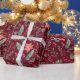 Flores color agua verde y Navidades rojos en un fondo marrón para envoltura de regalo de temporada. Haz que tus regalos sean aún más buenos este año.