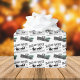 Santa Claus monta trineo con reno en silueta negra con patrón de tipografía Navidad. Incluye un camión retro, rústico, negro, que lleva un pino verde de vacaciones sobre fondo blanco.