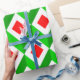 Este papel de envoltura tiene un diseño moderno de cubos de colores Navidades.