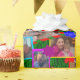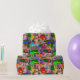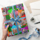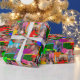 Este papel de envoltura tiene fotos de Eleanor por todas partes en forma de regalos bajo el árbol de Navidad.