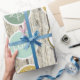 MODERNO PATRÓN DE MADERA IMPRIME a tu bebé o a tu hijo o a tu familia foto en un brillante papel de envolvimiento de paz de la mora y la alegría brillante para las vacaciones