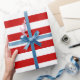 Navidades de franjas blancas rojas modernas envueltas en papel