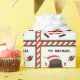 Envoltura de regalo creativa para Navidades de fútbol de vacaciones con un jugador de fútbol de Santa Claus saliendo a un pase. Editar texto para añadir el nombre del jugador, quarterback, entrenador o fan de los deportes de equipo de fantasía.