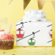 Góndolas rojas y verdes sobre papel envuelto en Navidades blancos.