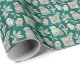 Un patrón de latas de dulces y gorras de nieve sobre un fondo verde esmeralda le dará un toque acogedor a su envoltura de regalo de vacaciones.