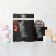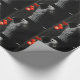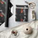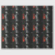 Diseño navideño de un loro gris africano del Congo con un racimo de adornos navideños rojos y un arco de su pico.
