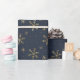 Bonito azul marino y Navidades de color dorado patrón de copos de nieve. Envoltura de regalo con tema de Navidad azul de moda. Papel de embalaje actual, envoltura de regalo sin fisuras, artesanía, scrapbooking, papeles de revistas.