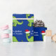 Impresionantes Navidades de dinosaurios azules y verdes envolviendo papel. Este apatosauro se ve muy lindo en un sombrero de Santa Cruz de vacaciones con una pequeña sonrisa. Me gustan los animales de Navidades prehistóricos y los regalos que los niños amarán. Personalizar este envoltorio de regalo para tu pequeño.