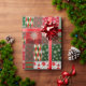Este papel de envolvimiento al estilo de los patchwork está diseñado para las vacaciones. El diseño se compone de varios segmentos rectangulares y cuadrados, cada uno con diferentes motivos de vacaciones. El papel de envoltura combina estos patrones para crear un diseño cohesivo, alegre y visualmente atractivo, perfecto para envolver regalos durante la temporada de vacaciones.